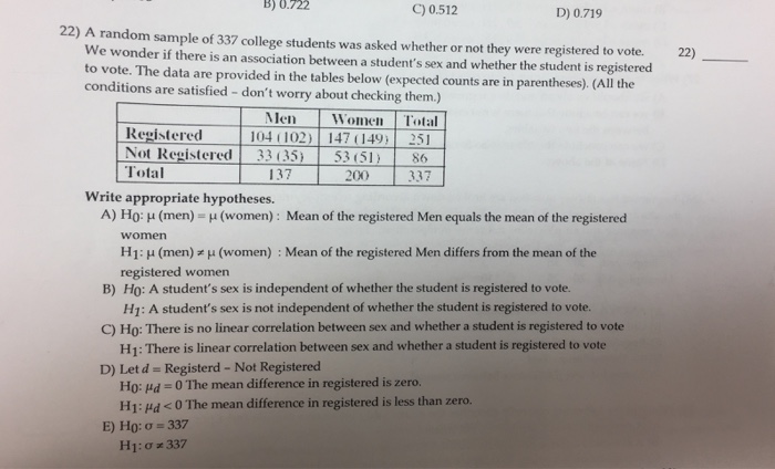 We wonder if there is an association between a student s sex and whether the student is registered to vote. One question summarized in. I am stuck on my homework and missing deadline.